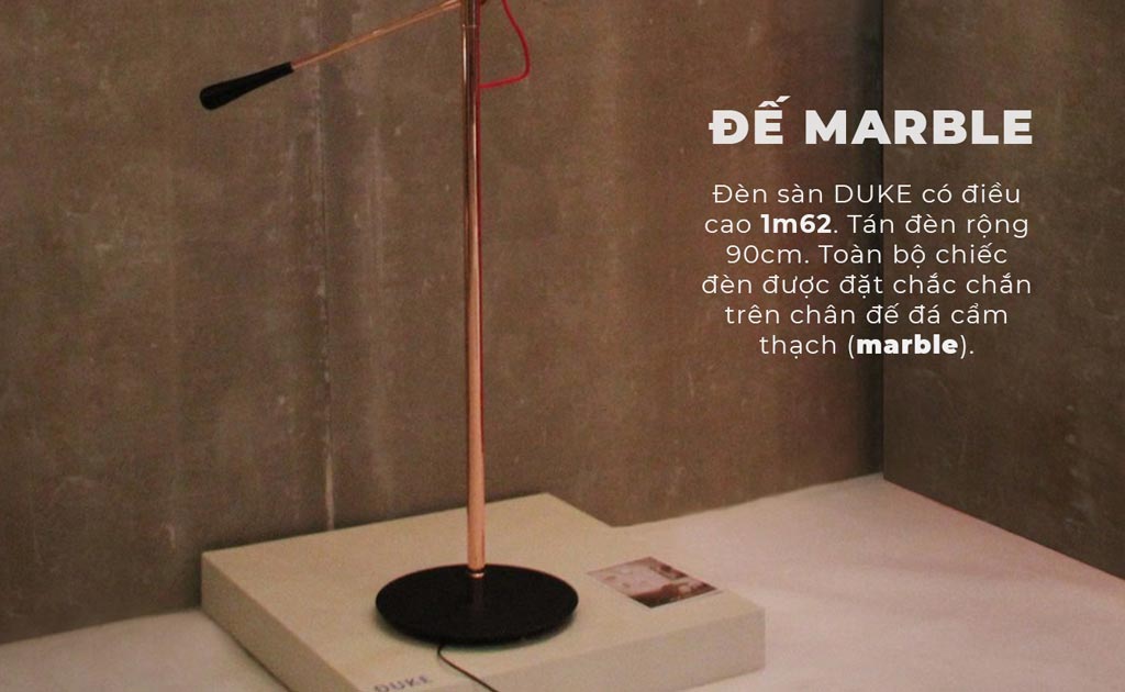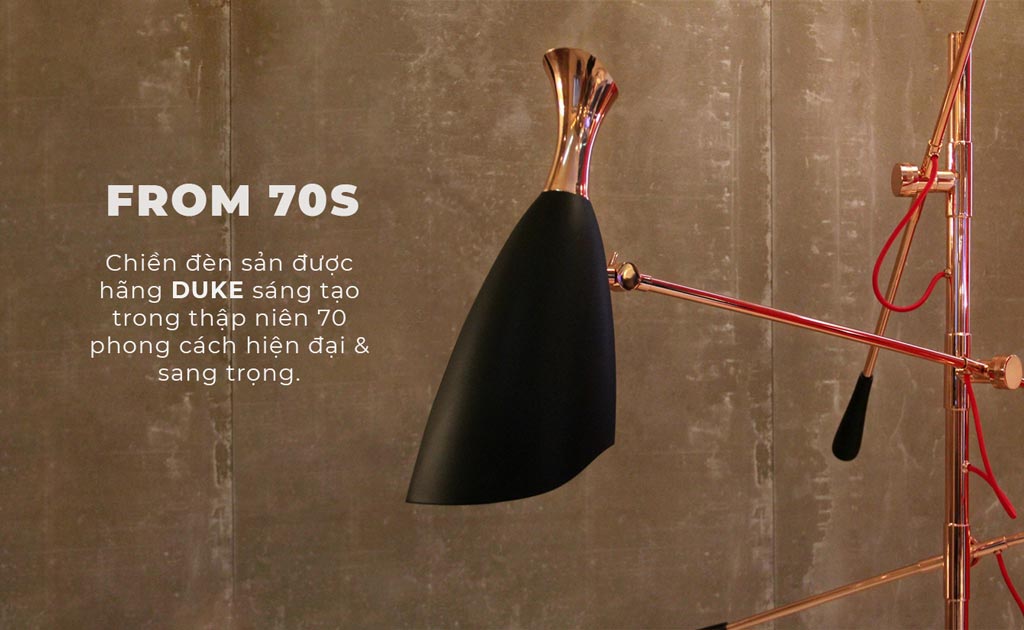 Đèn sàn cao cấp được sản xuất dựa theo nguyên bản thiết kế đèn sàn của hãng Duke trong thập niên 70s. Chiếc đèn phù hợp phòng khách hiện đại và rất tiện dụng.