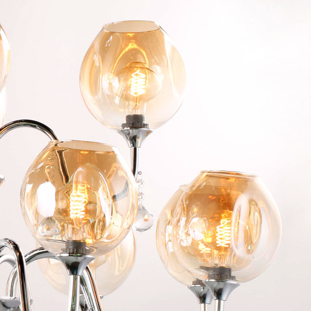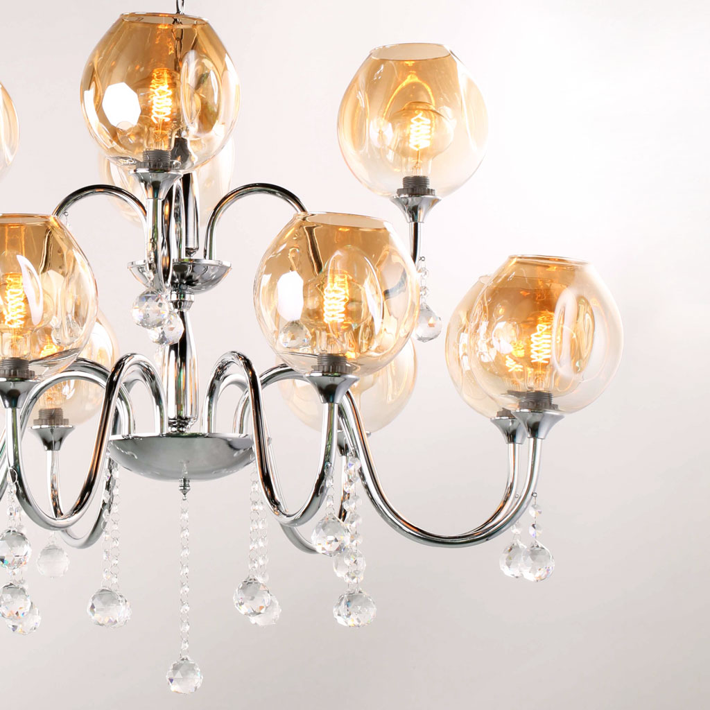 Đối với một ngôi nhà, sở hữu một chiếc đèn chùm đẹp đầy duyên dáng luôn được xem là món trang sức quý giá cho không gian đấy. Đèn chùm thủy tinh VIRGO L023/8+4 với đường nét hiện đại, sang trọng, mang đến vẻ sang trọng cho không gian của bạn. Đèn có tổng cộng 12 tay với chao thủy tinh hiệu ứng chuyển màu mê hoặc. Đèn có kích thước lớn với chiều rộng hơn 1 mét, rất phù hợp những căn phòng có diện tích lớn như phòng khách, sảnh… với chiều cao trần từ 3 mét trở lên. Đèn chùm là một sản phẩm của hãng đèn VIRGO, một thương hiệu đèn trang trí uy tín được yêu thích trên thị trường hiện nay. Sản phẩm được bán độc quyền với giá tốt nhất tại showroom den379.com