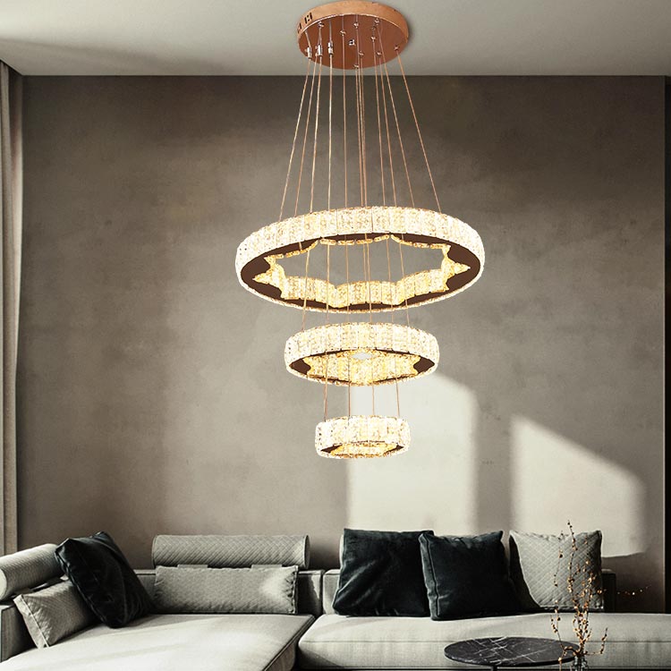 Đèn thả LED 3 vòng tròn sử dụng chất liệu pha lê có vẻ đẹp vô cùng ấn tượng. Sử dụng chiếc đèn giúp tạo hiệu ứng lung linh và vẻ sang trọng cho bất kỳ căn phòng nào. Các viên pha lê trong trẻo lấp lánh dưới ánh sáng 3 chế độ màu trắng, vàng hay trung tính. Đem lại một không gian sống lý tưởng cho bạn và gia đình mình.