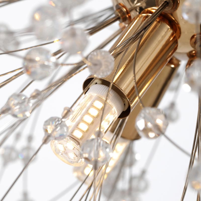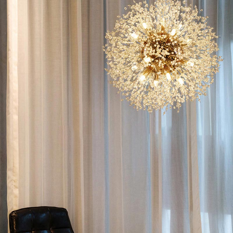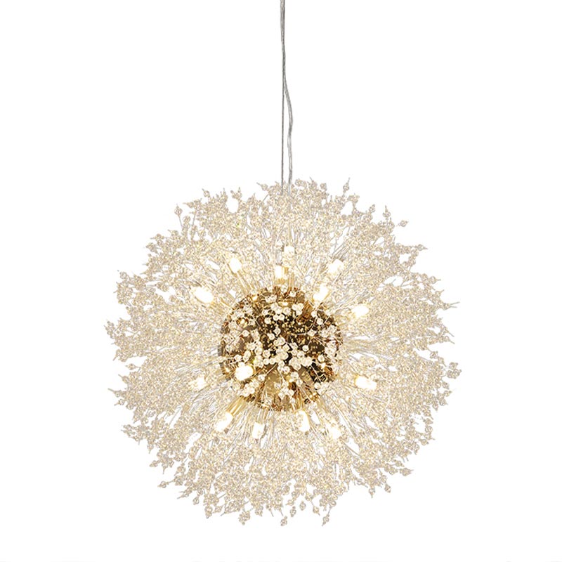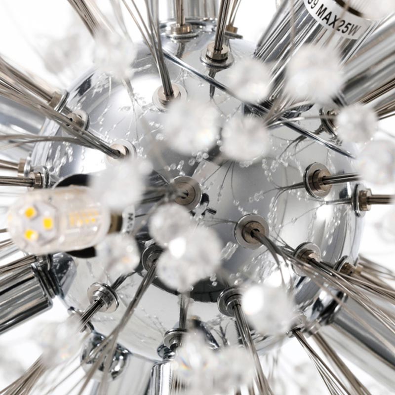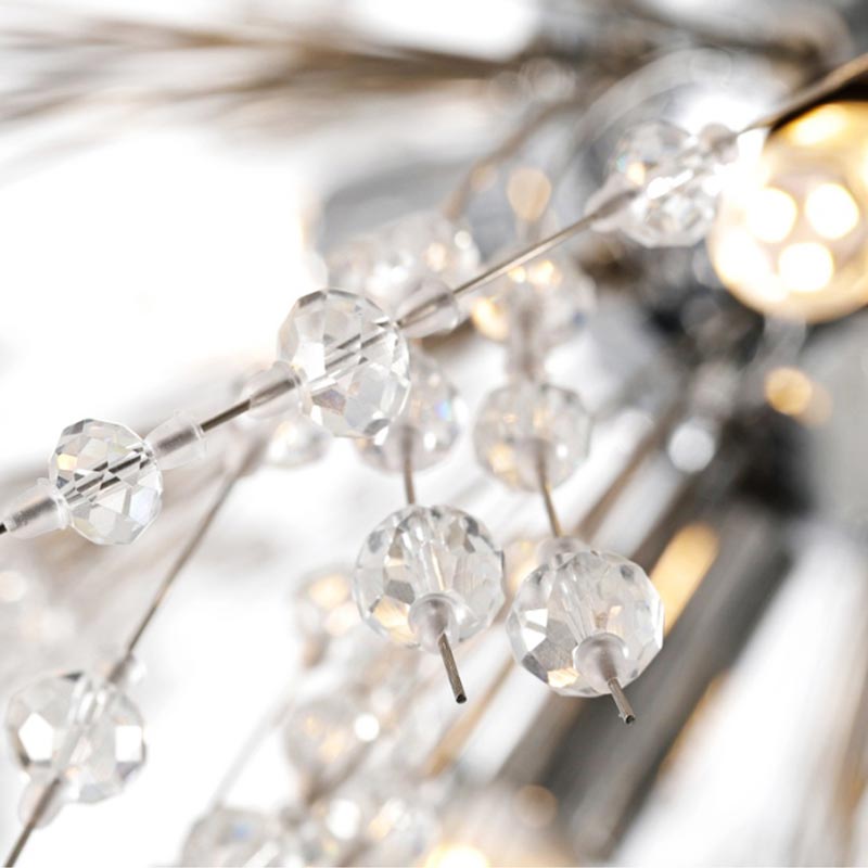 Chiếc đèn thả bồ công ánh có đường kính 60cm với hàng trăm viên pha lê nhỏ lắp lánh, giống như một bông hoa bằng ánh sáng nở rộ trong căn phòng. Ánh sáng từ các bóng LED không bị chói mà ấm áp dễ chịu. Chiếc đèn dễ dàng ứng dụng phù hợp cho mọi căn phòng có trần cao từ 2m8 như phòng khách, phòng ngủ hay phòng ăn… Sản phẩm dễ lắp đặt và bảo trì.