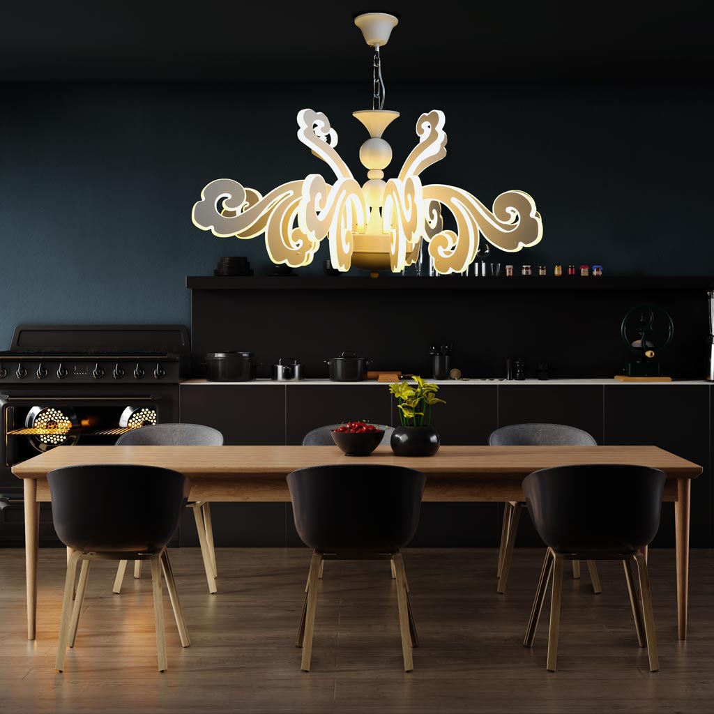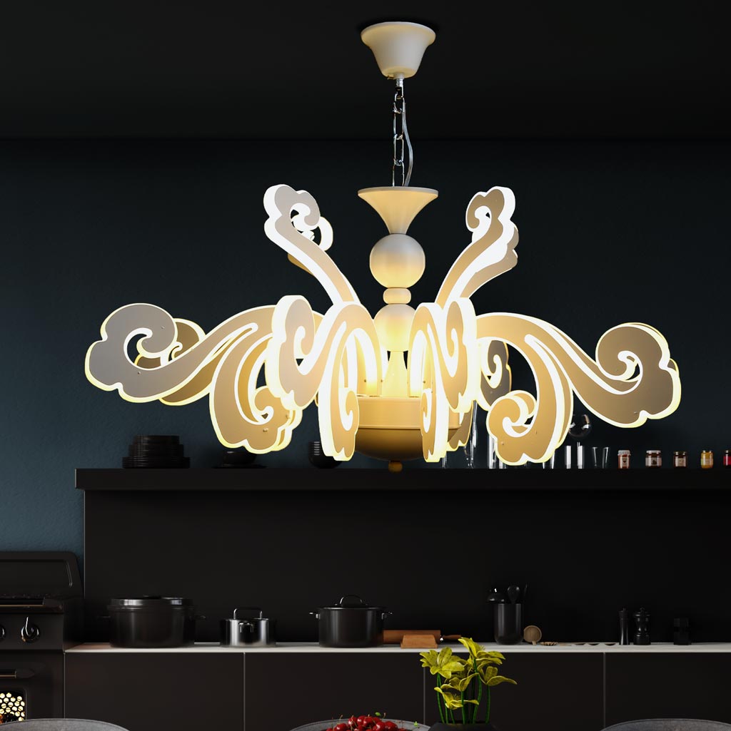 Mẫu đèn chùm có kiểu dáng lấy cảm hứng từ đám mây cách điệu rất đẹp mắt. Chiếc đèn có khả năng thắp sáng mọi căn phòng và giúp tăng cường vẻ đẹp của không gian xung quanh.