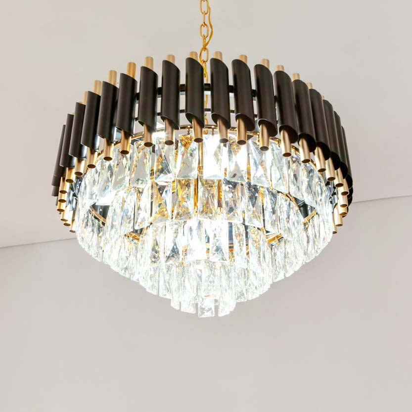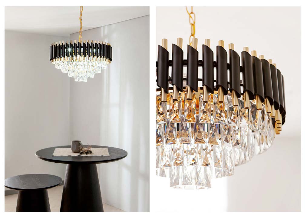 Đèn sở hữu thiết kế pha lê cao cấp, độ trong suốt cao. Đèn thường được sử dụng để trang trí cho nhiều không gian như phòng khách, phòng ăn hay phòng ngủ… Ánh sáng từ đèn ấm cúng, lan tỏa như một món trang sức hoàn hảo cho căn phòng. Kích thước chiếc đèn cũng khá nhỏ gọn nên có thể dễ dàng phù hợp cho bàn ăn hay các căn phòng trần thấp. Loại pha lê nhân tạo cao cấp nhất được sử dụng trên mẫu đèn sang trọng này.