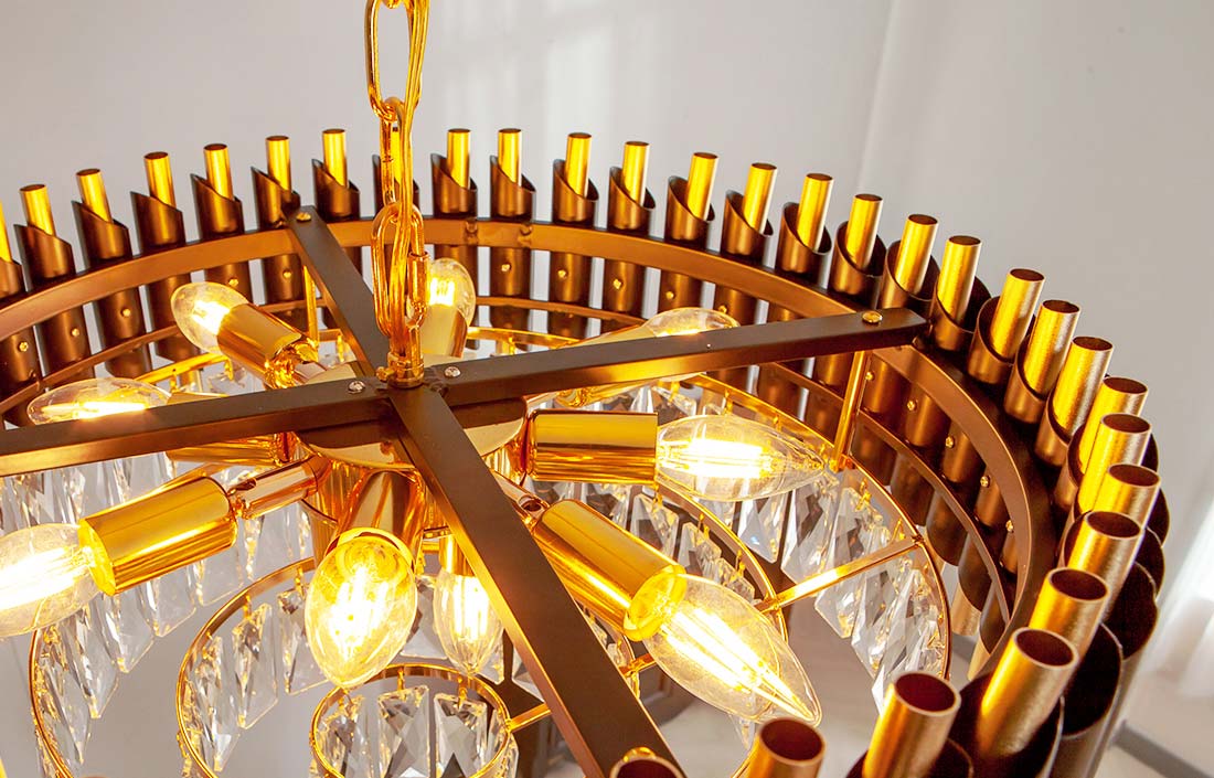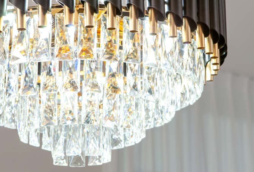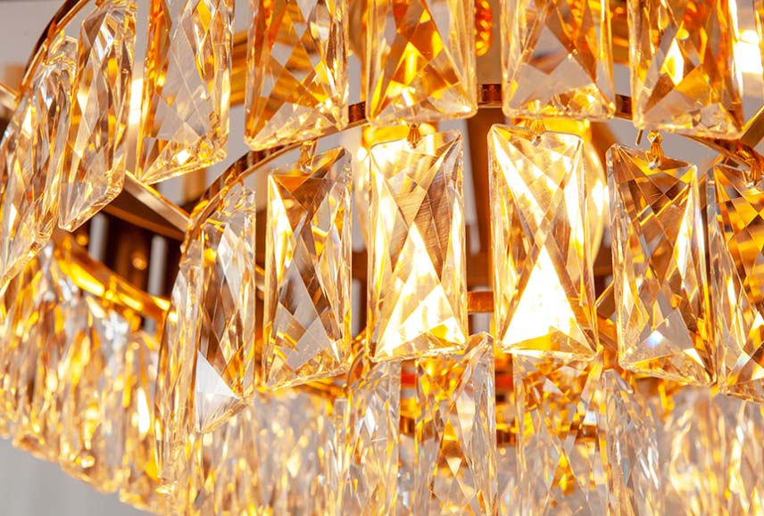 Đèn được chế tác từ các khối pha lê trong suốt, pha lê K9 là loại vật liệu pha lê nhân tạo tốt nhất hiện nay.