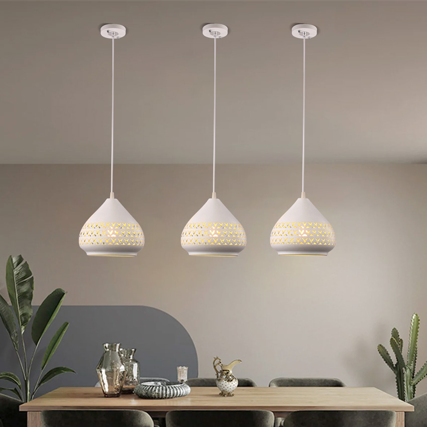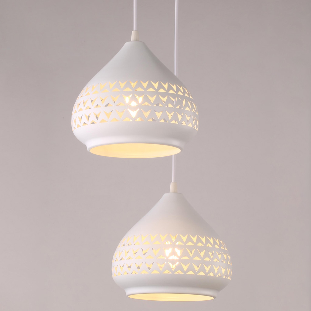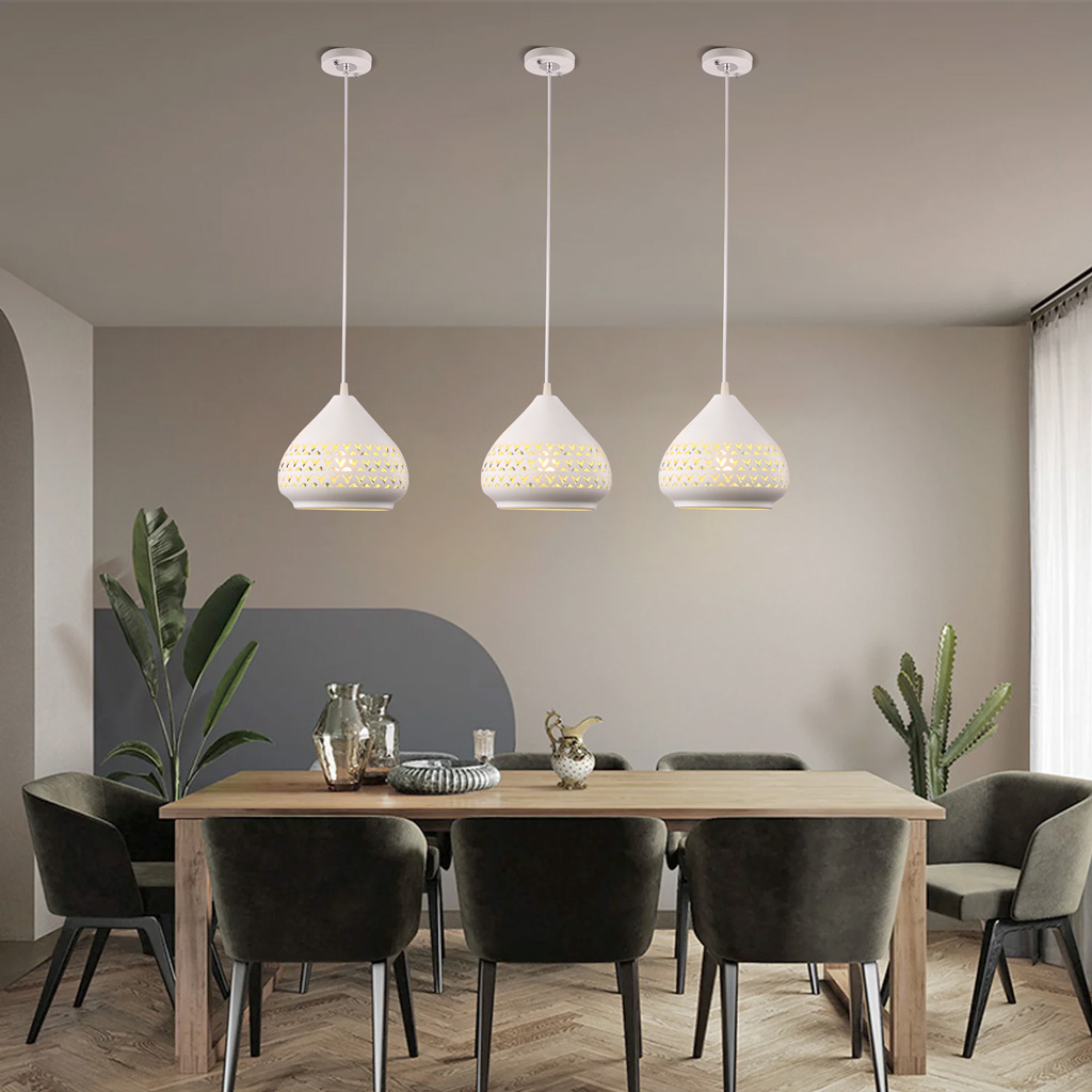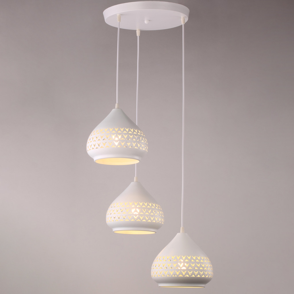 Đèn thả bàn ăn 3 bóng trắng khắc hoa văn 18781