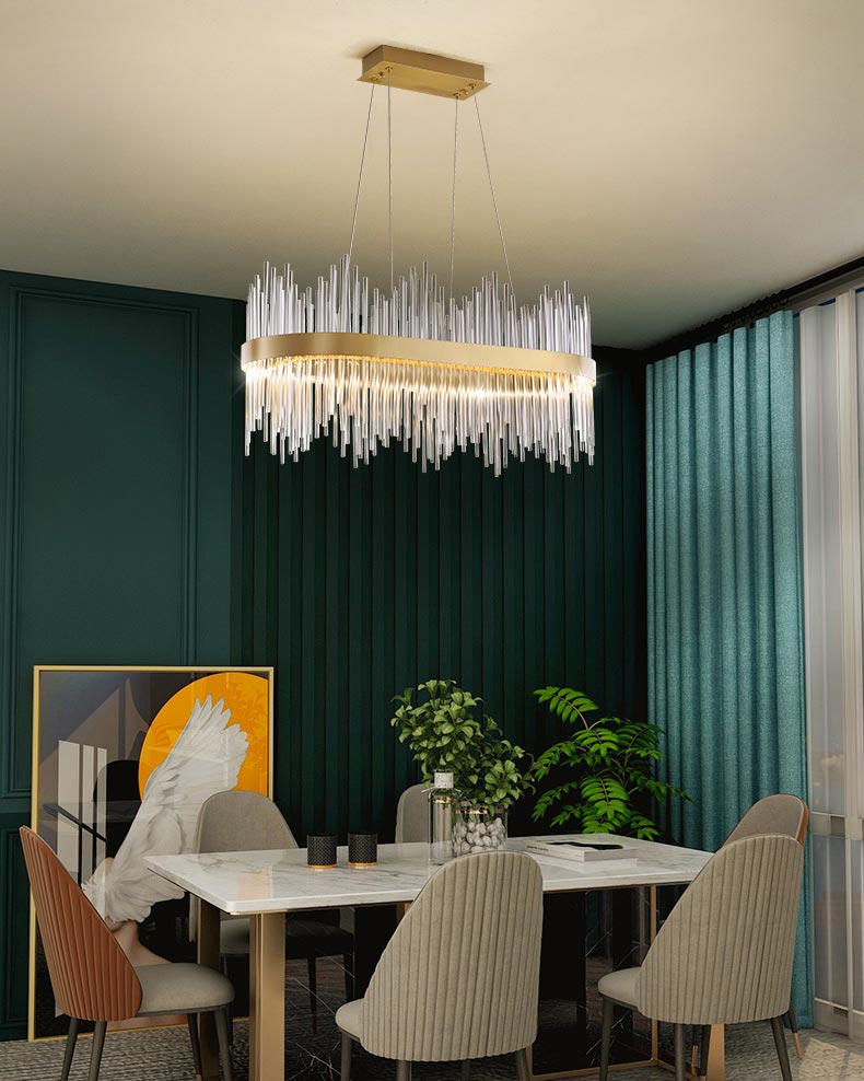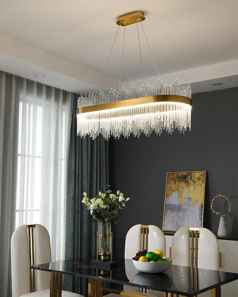 Đèn chùm trang trí bàn ăn cao cấp VRA1558 tương thích để được trang bị trang trí và Tạo nguồn sáng cho mọi căn phòng. Bộ đèn trang trí đem đến vẻ sinh động cho phòng khách nhưng cũng đầy ấm cúng và thư giản để cũng sử dụng tại phòng ngủ. Chất liệu Pha lê là một trong những thành phần có tính ứng dụng cao, có thể có khả năng mọi căn phòng từ hiện đại đến cổ điển. Đặc biệt với thiết kế thanh ngang, đèn là lựa chọn lý tưởng để sử dụng cho phòng ăn.