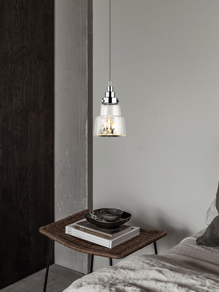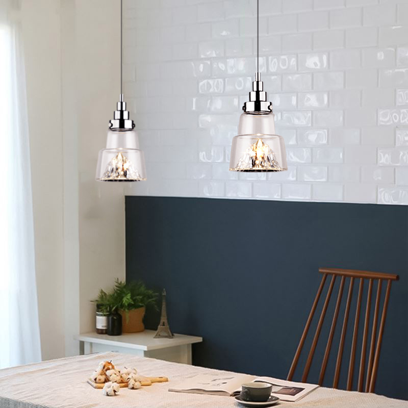 Mẫu đèn thả bằng thủy tinh VR1091 có thiết kế đẹp mắt, mang đến vẻ thú vị cho không gian sống của bạn. Đèn sử dụng bóng LED ánh sáng vàng chất lượng cao với công suất chiếu sáng 7W, không chỉ cung cấp ánh sáng mà còn là điểm nhất tuyệt vời cho bàn ăn, thả đầu giường và trang trí nhiều không gian khác.