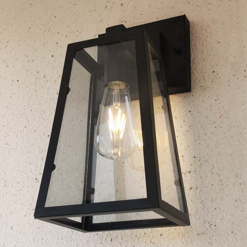 Mẫu đèn trang trí gắn tường có khả năng chống nước. Kiểu dáng đèn hình vuông đơn giản và các chi tiết hoa văn hiện đại. Đèn làm bằng nhôm và chao đèn thủy tinh. Sử dụng 1 bóng LED E27.