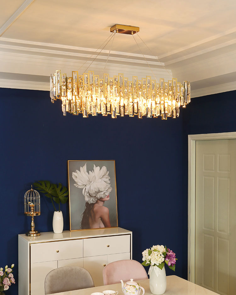 Đèn chùm pha lê hiện đại không những phù hợp với phong cách hiện đại mà những không gian cổ điển cũng đều rất thích hợp. Chất liệu chủ yếu là pha lê và hợp kim càng tăng sự sang trọng cho căn nhà. Đèn tạo không gian ấm ấp, thơ mộng với những ánh đèn lung linh chiếu xuống, khiến bạn khi về tới nhà chỉ muốn bật ngay đèn lên chiêm ngưỡng sự lấp lánh của ánh đèn.