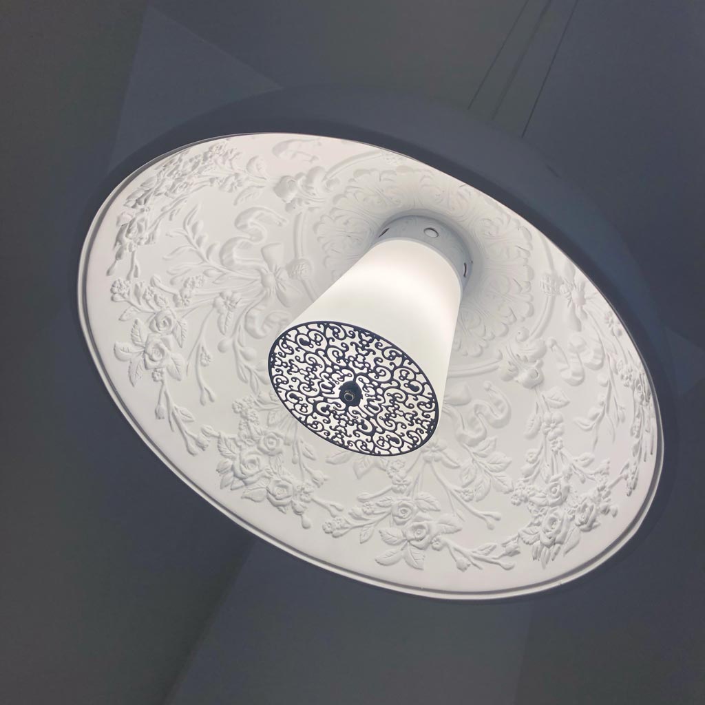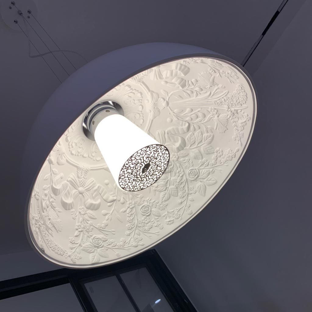 Chiếc đèn thả cao cấp chuyên sử dụng cho bàn ăn. Đèn có thiết kế hình bán cầu đơn giản, đặc biệt bên trong chao đèn là một “khu vườn” của tác phẩm nghệ thuật điêu khắc. Chiếc đèn mang dáng vẻ hiện đại và rất độc đáo này là một sáng tạo của các nhà tạo mẫu Ý. Sản phẩm được sản xuất lại đem đến vẻ nghệ thuật cho gia đình bạn với chất lượng tương đồng và giá bán hấp dẫn nhất.