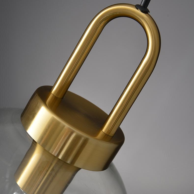 Chiếc đèn được thiết kế để sử dụng trang trí và chiếu sáng cho bàn ăn. Đèn có thiết kế chao thủy tinh tròn đường kính 20cm. Điểm nhấn là phần chuôi đèn hợp kim được xi vàng đồng sang trọng. Ánh sáng ấm áp từ bóng đèn LED với công suất dịu nhẹ, tạo bầu không khí thư giản cho khu vực này.