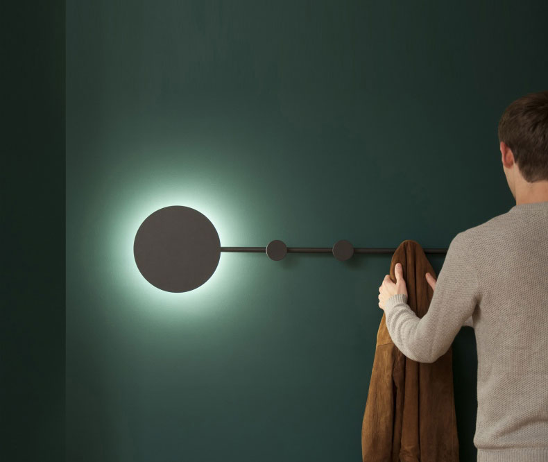 Đèn gắn tường họa tiết ấn tượng trên nền đen bí ấn, chân đèn hợp kim sáng bóng. Rất lạ mắt so với các mẫu đèn tường khác.