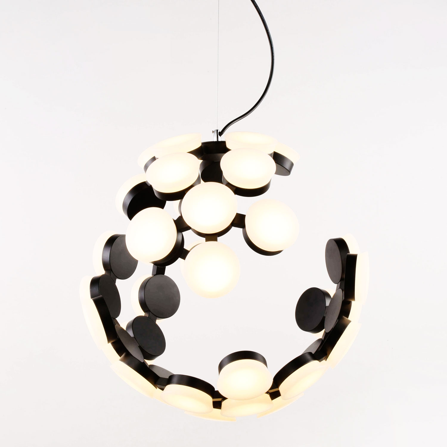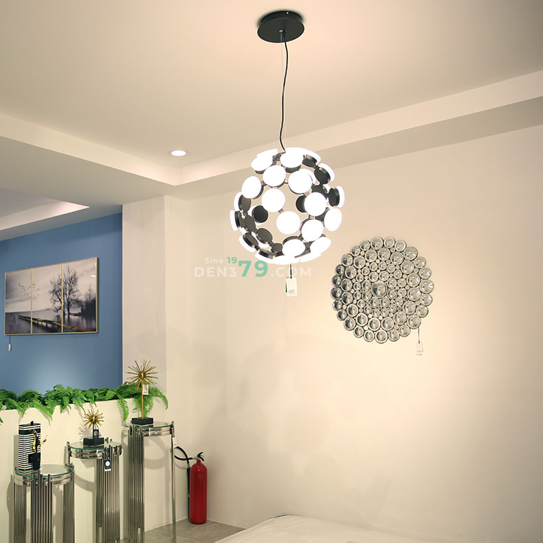 Mẫu đèn thả có thiết kế sang trọng, cao cấp, thường dùng để trang trí cho phòng khách, bàn ăn hay phòng ngủ. Đèn được kết hợp từ những mo đun nhỏ liên kết, lấy ý tưởng từ trạm không gian vũ trũ được kết nối bằng các mođun đen trắng. Chiếc đèn giúp đem lại ánh sáng hấp dẫn cho căn phòng của bạn.