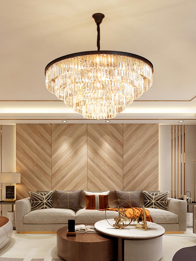 Pha lê là một loại chất liệu rất đặc biệt và quý. Nó có nhiều màu và mỗi màu có những ý nghĩa tốt đẹp riêng. Nó là biểu tượng mang đến điềm tốt lành cho người sở hữu. Theo phong thủy, tuy pha lê dễ vỡ nhưng là sự bền vững và trong sáng. Đèn chùm trang trí sử dụng pha lê là chất liệu chủ yếu tạo ra những tia sáng lấp lánh, óng ánh mà những chất liệu khác không thể có được. Ngôi nhà của bạn sẽ trở nên sang trọng, cổ điển và đẳng cấp theo thời gian.