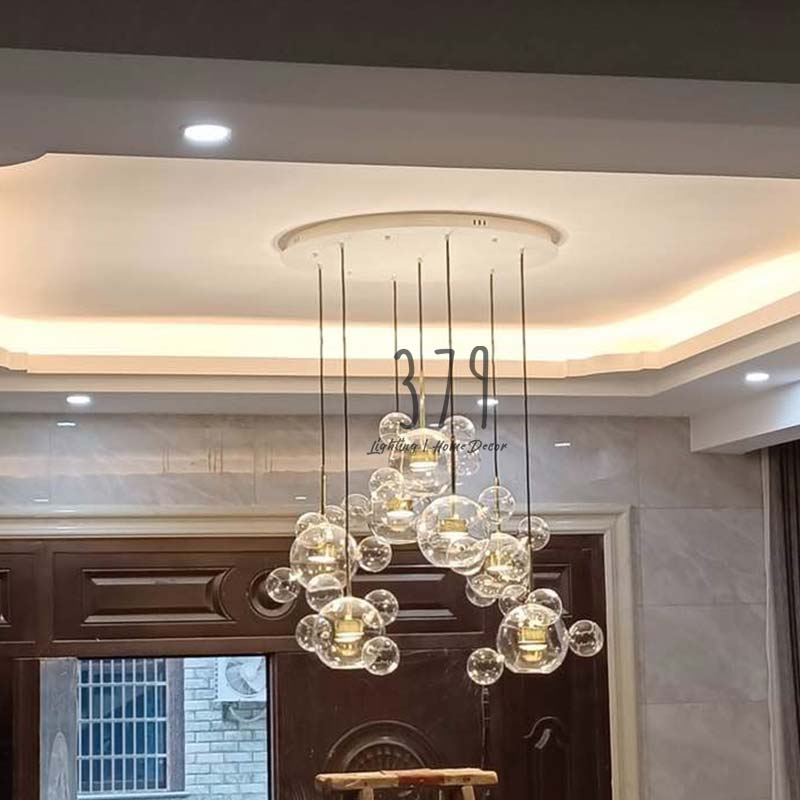 Đèn thả thủy tinh trang trí Bọt nước THCN 33A-18 có độ dài dây treo tiêu chuẩn 1m. Den379.com hỗ trợ thay thế dây treo với độ dài linh hoạt theo yêu cầu của bạn ( xin liên hệ nhân viên tư vấn để được hỗ trợ).
