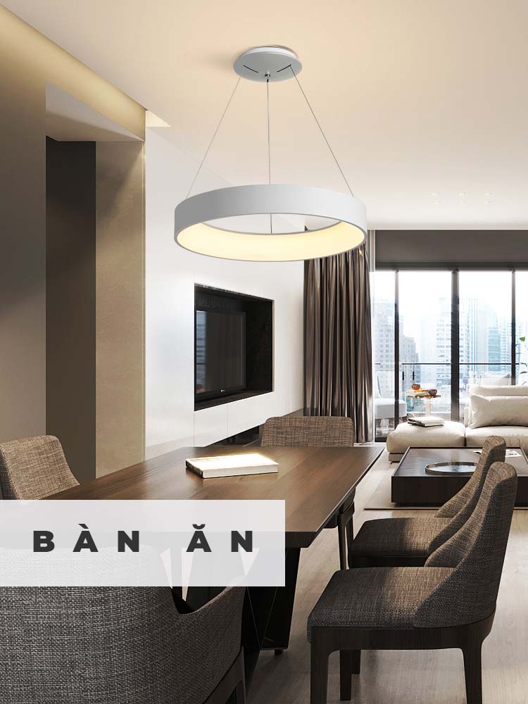 Đèn thả LED trang trí có thiết kế kiểu hình tròn khá hiện đại và độc đáo. Thay vì sử dụng đèn tuýp huỳnh quang thông thường có tính thẩm mỹ kém, tốn điện năng. Đèn thả vòng tròn LED tiết kiệm điện hơn, mang vẻ đẹp độc đáo và ánh sáng lan tỏa hơn. Treo đèn tại vị trí trung tâm của các căn phòng, ánh sáng lan tỏa ra không gian với công suất 27W. Với kiểu thiết kế này, chiếc đèn có thể ứng dụng phù hợp với mọi căn phòng như phòng khách, phòng ăn, phòng ngủ…
