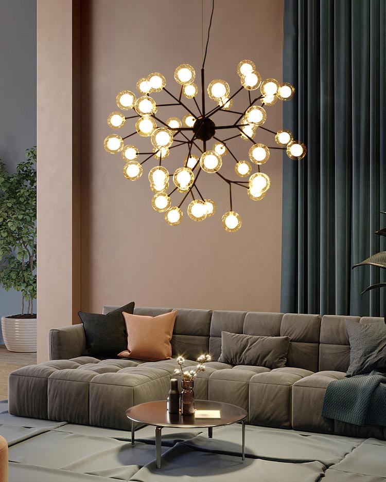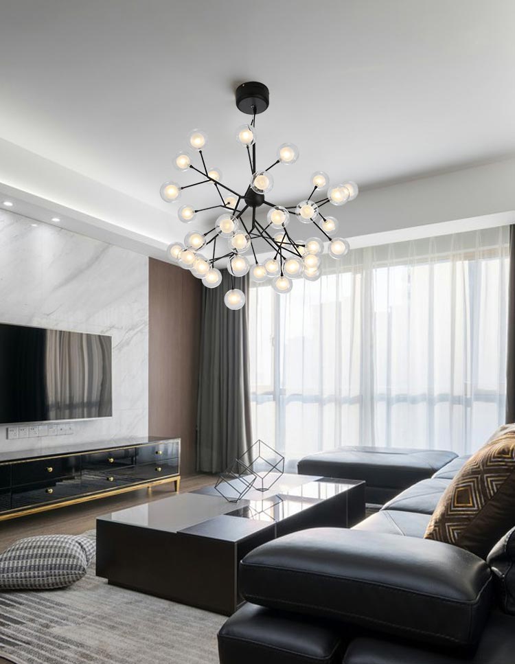 Đèn chùm hiện đại 36 bóng màu đen trang trí phòng khách