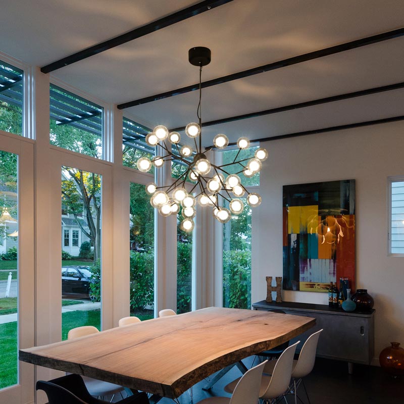 Đèn chùm hiện đại 36 bóng màu đen trang trí bàn ăn