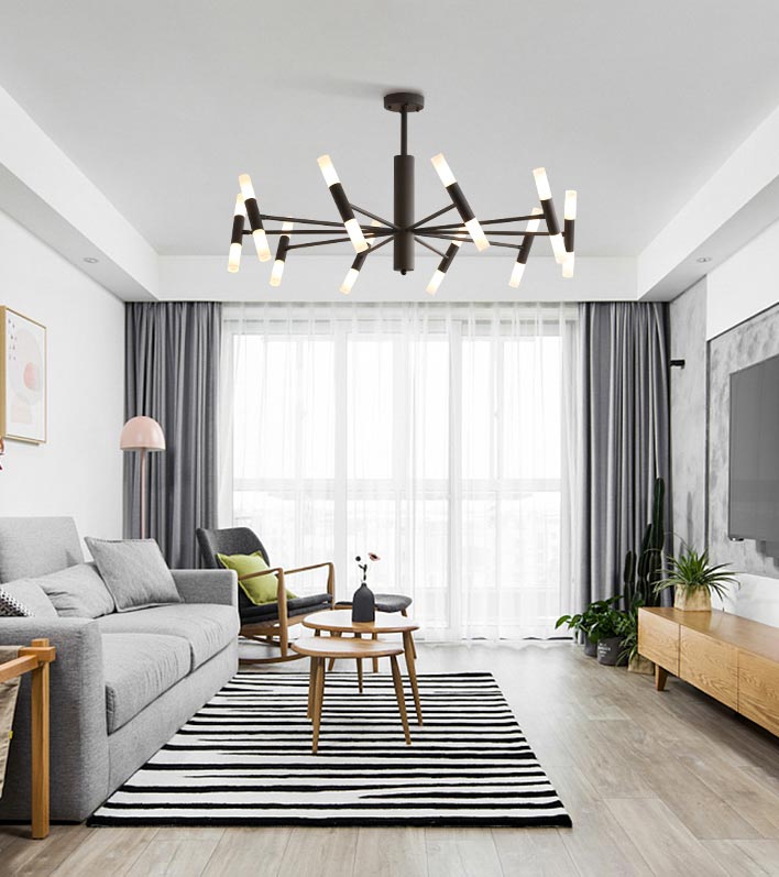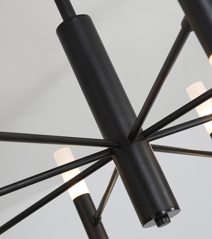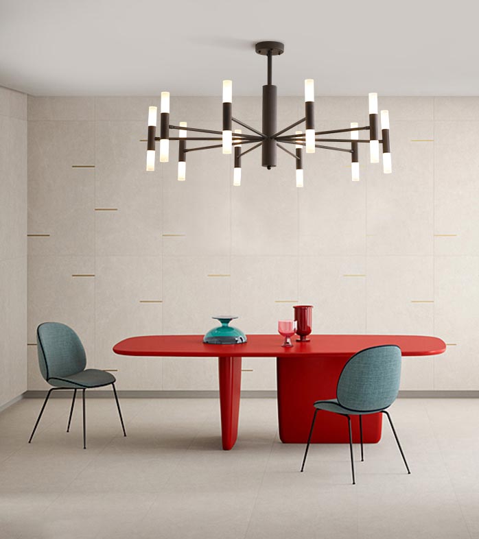 Chiếc đèn chùm hiện đại sở hữu kiểu dáng hiện đại, đơn giản, dễ dàng ứng dụng cho mọi căn phòng. Đèn sử dụng vật liệu nhôm đúc và thủy tinh cứng cáp, đem lại giá trị thẩm mỹ lâu dài.