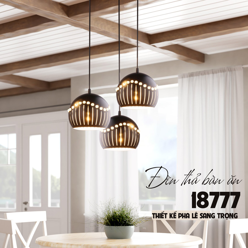 Đèn thả bàn ăn 3 bóng hiện đại 18777 có độ dài dây treo tiêu chuẩn 1m. Den379.com hỗ trợ thay thế dây treo với độ dài linh hoạt theo yêu cầu của bạn ( xin liên hệ nhân viên tư vấn để được hỗ trợ).
