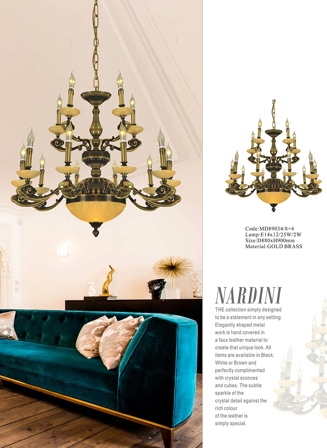 Đèn chùm đồng chao đá cổ điển MD89034/8+4