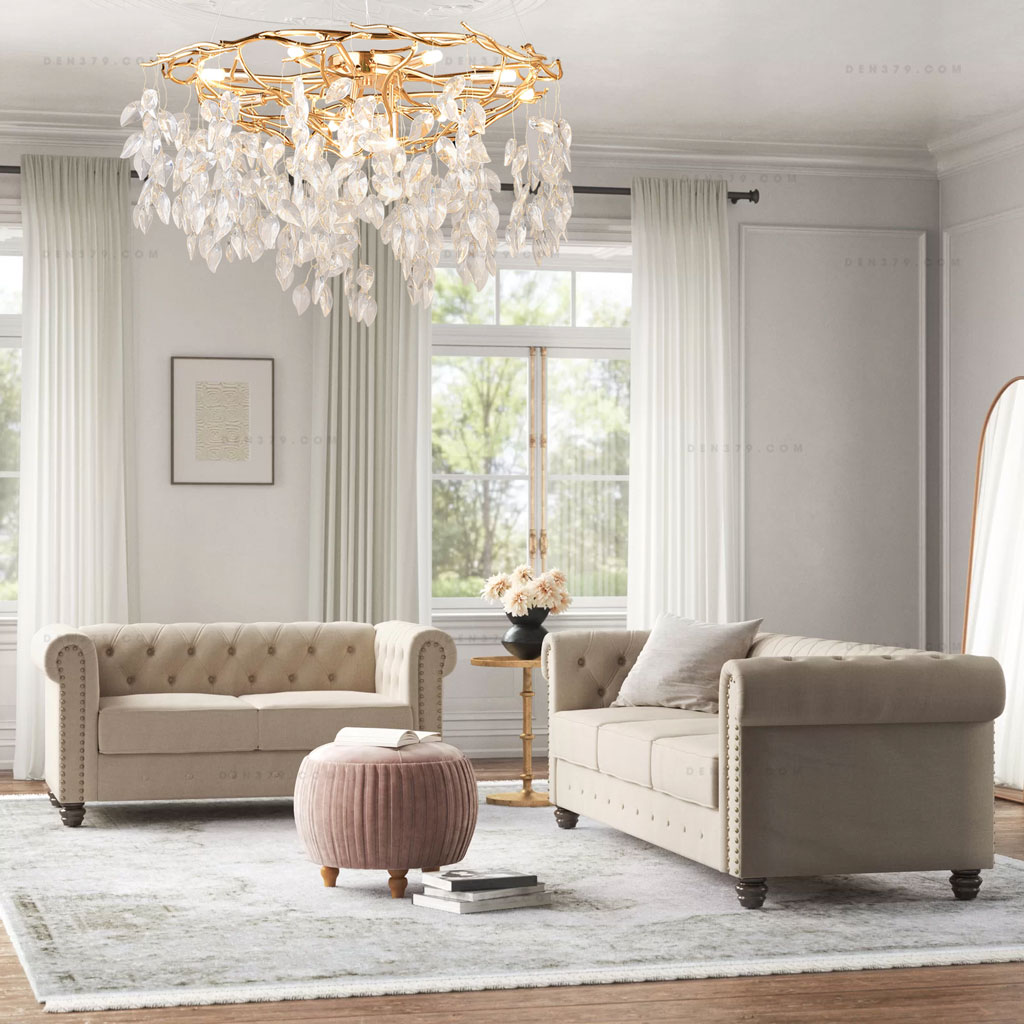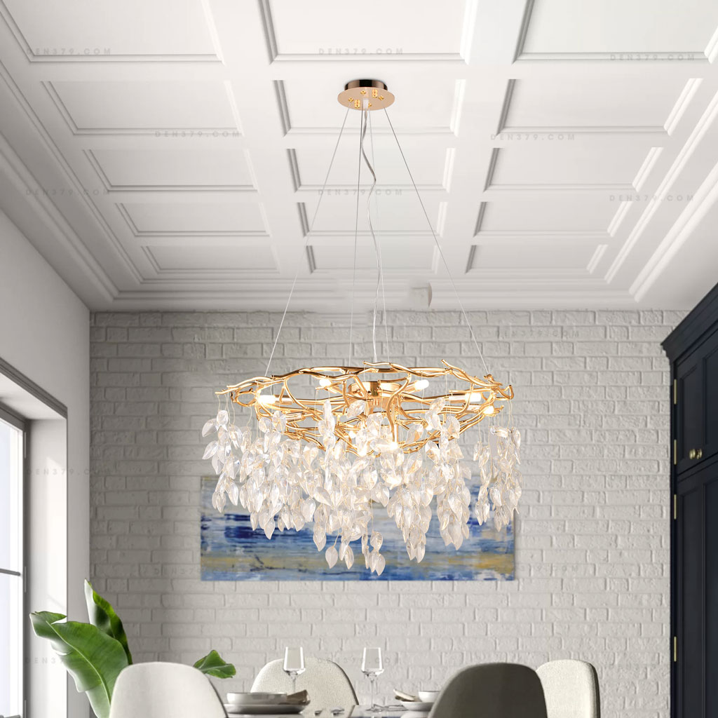 Bộ đèn có chất lượng hoàn thiện cao. Các hạt pha lê trong suốt, tạo hiệu ứng bắt mắt khi ánh sáng truyền qua. Khung đèn hợp kim xi mạ PVD cao cấp, đảm bảo độ bền và vẻ thẩm mỹ.