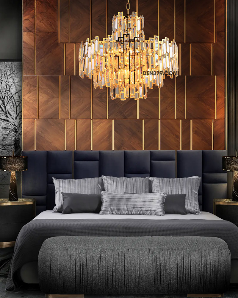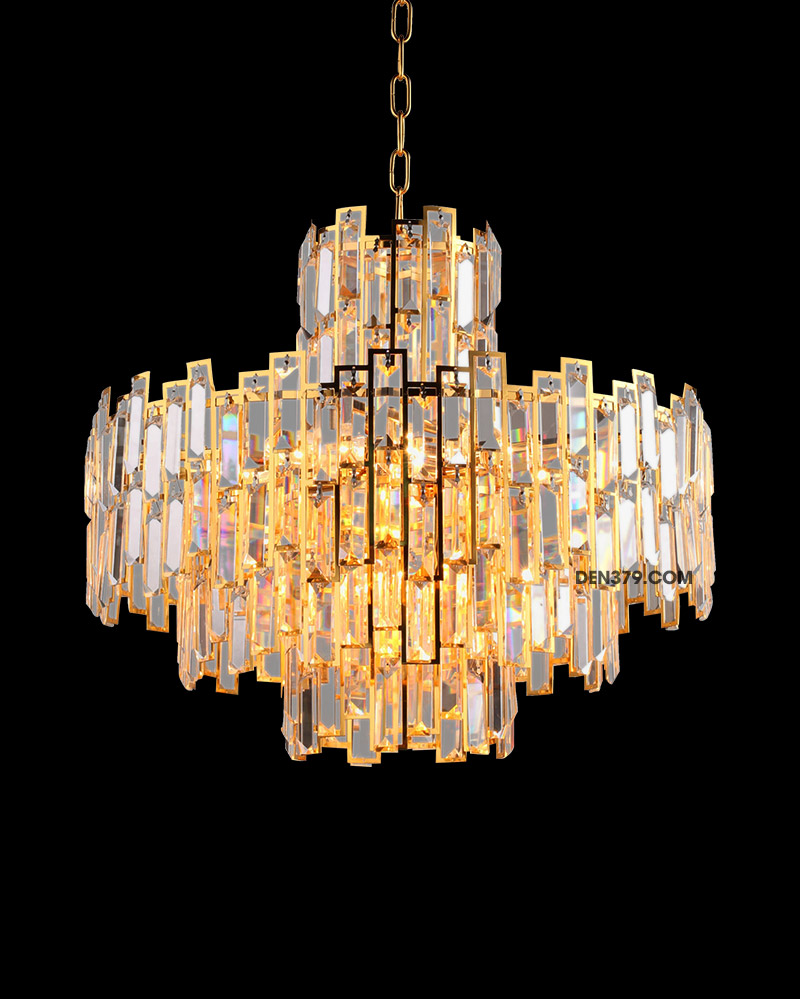 Đèn chùm pha lê khung inox xi mạ vàng cao cấp DH8033