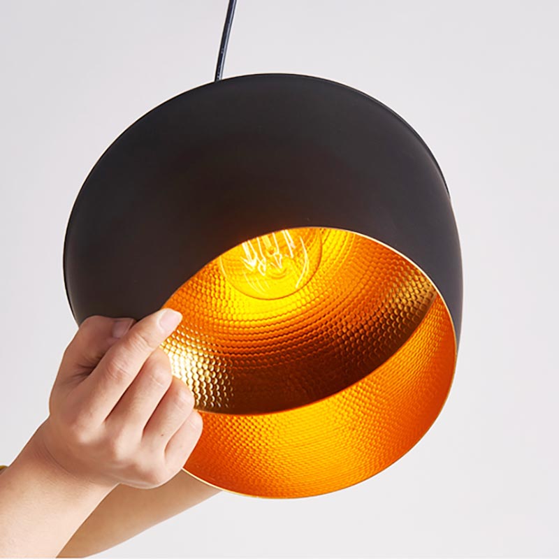 Bộ đèn thả bàn ăn LT438 gồm 3 mẫu đèn thả hợp kim nhôm hiện đại và mức giá rẻ để bạn lựa chọn. Tuy kiểu dáng rất đơn giản nhưng đây là lựa chọn rất phổ biến và luôn rất đẹp mắt để chiếu sáng và trang trí cho bàn ăn. Đèn thả có chao đèn được sơn tĩnh điện màu đen đơn giản bên ngoài và bên trong được xi lớp sơn bóng óng ánh. Không chỉ làm điểm nhấn đẹp mắt, phần vàng bóng này còn giúp ánh sáng phản xạ tốt hơn, chiếu ánh sáng vàng ấm áp xuống khu vực bàn ăn.