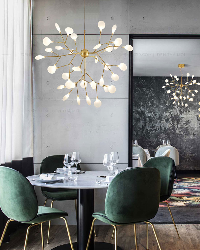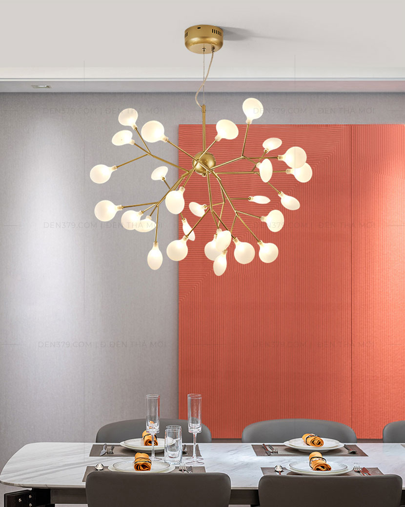 Bộ đèn sử dụng mang đến ánh sáng ấm cúng và cực kỳ thư giãn cho phòng ngủ.Ánh sáng hấp dẫn và vẻ sang trọng khi lắp đặt tại khu vực bàn ăn.Lắp đặt tiện dụng và dây thả của đèn có thể tùy chỉnh độ cao dễ dàng.
