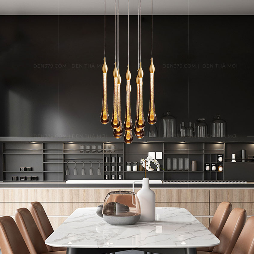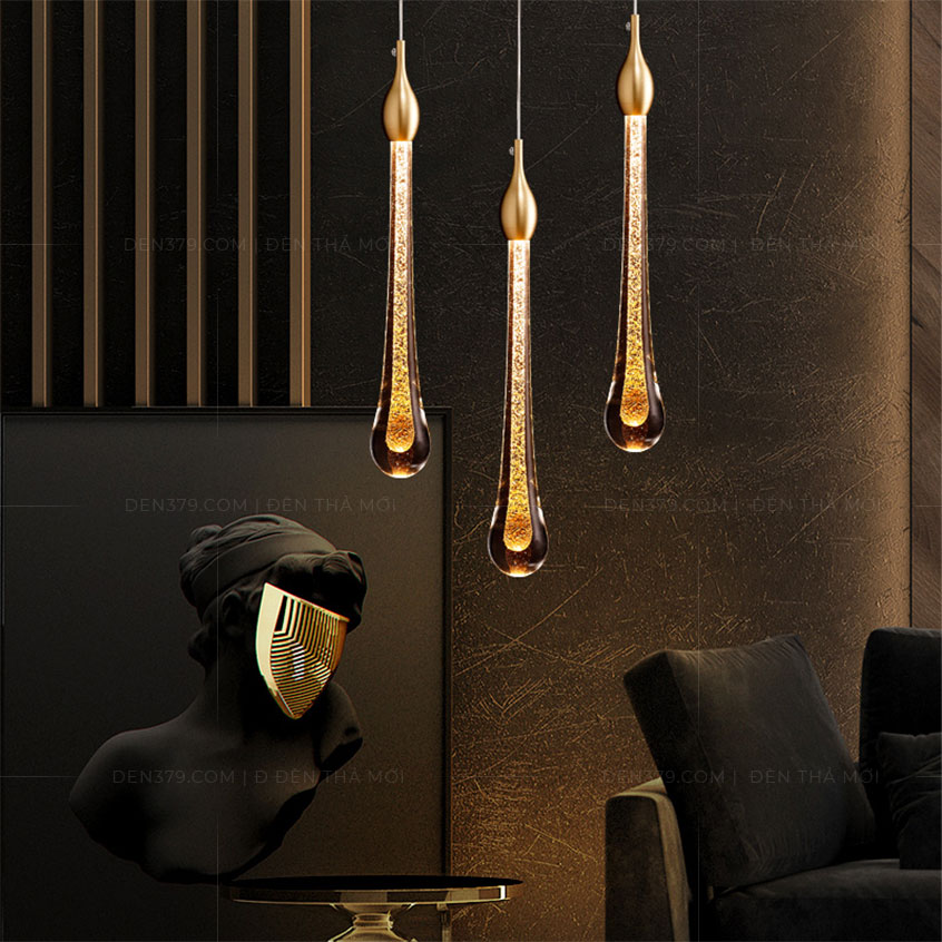 Đèn thả pha lê cao cấp với tạo hình giọt nước cách điệu, góp phần tạo vẻ ngoài ấn tượng và cực kỳ sang trọng cho không gian của bạn. Chiếc đèn sử dụng vật liệu pha lê cao cấp với độ trong suốt cao, đặc biệt phần nhũ kim tuyến bên trong còn nổi bật hơn dưới ánh sáng.