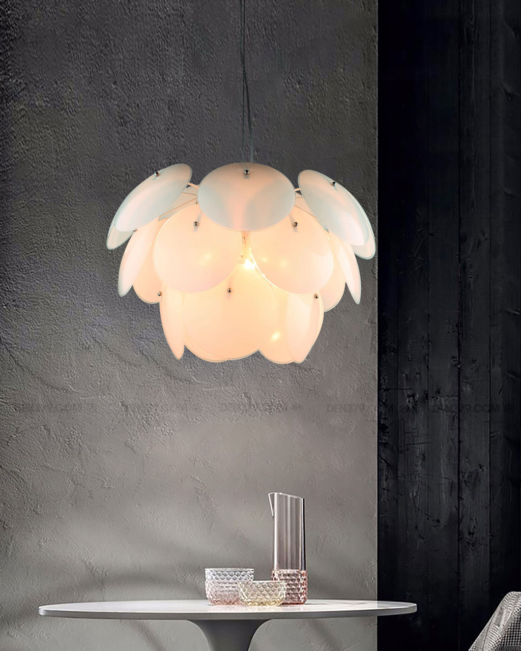 Đèn thả trang trí D2089 là một sản phẩm có thiết kế vô cùng thú vị và độc đáo, vừa đơn giản – hiện đại nhưng đồng thời vẫn tạo được hình ảnh vô cùng ấn tường. Chiếc đèn gồm nhiều chụp đèn nhỏ xếp chồng lên nhau, liên tưởng nhiều đến những cánh hoa astisô, giữa khe hở của những cánh hoa là luồng sáng từ bóng LED bên trong. Chiếc đèn cung cấp ánh sáng dễ chịu và sử dụng phù hợp cho nhiều căn phòng.