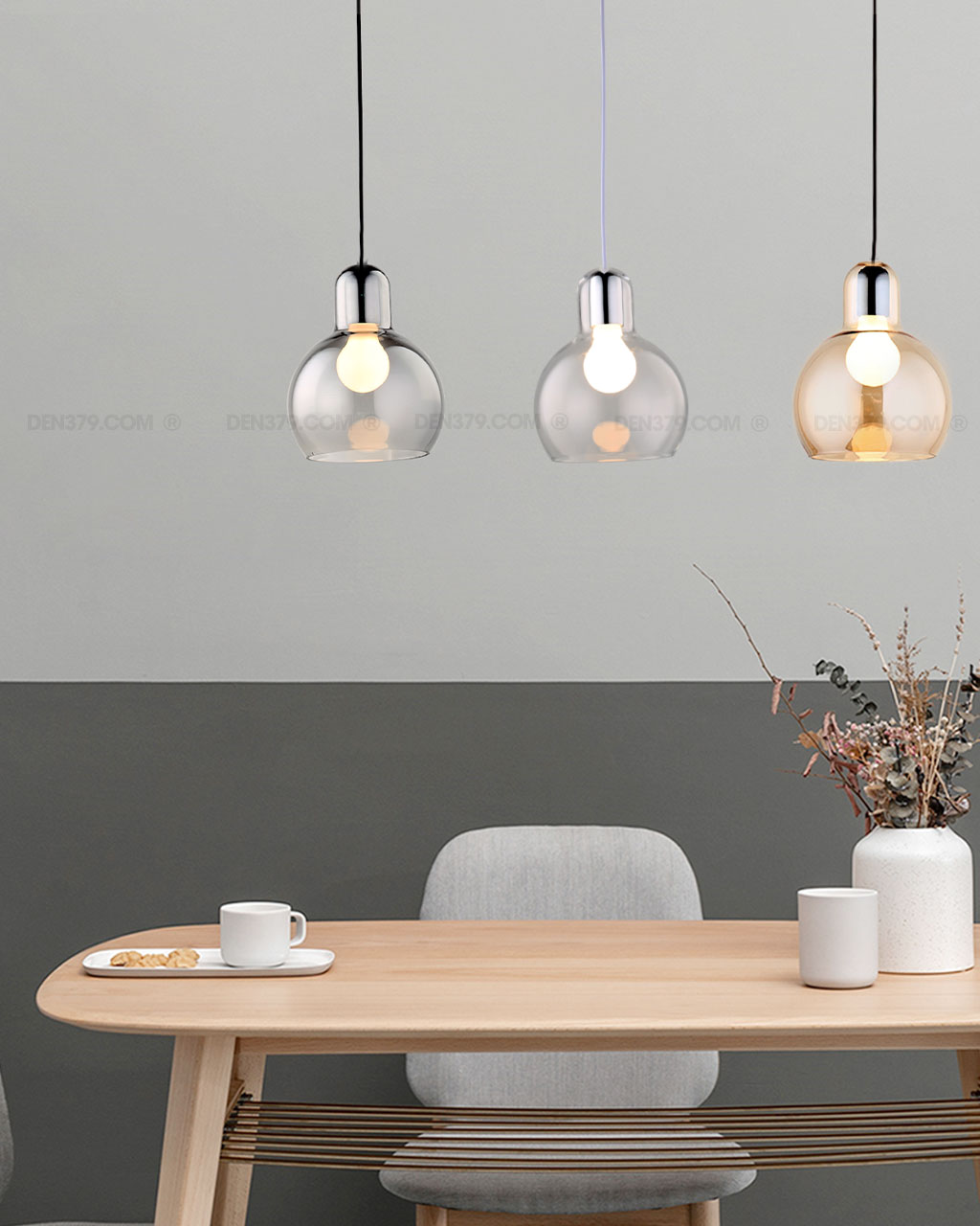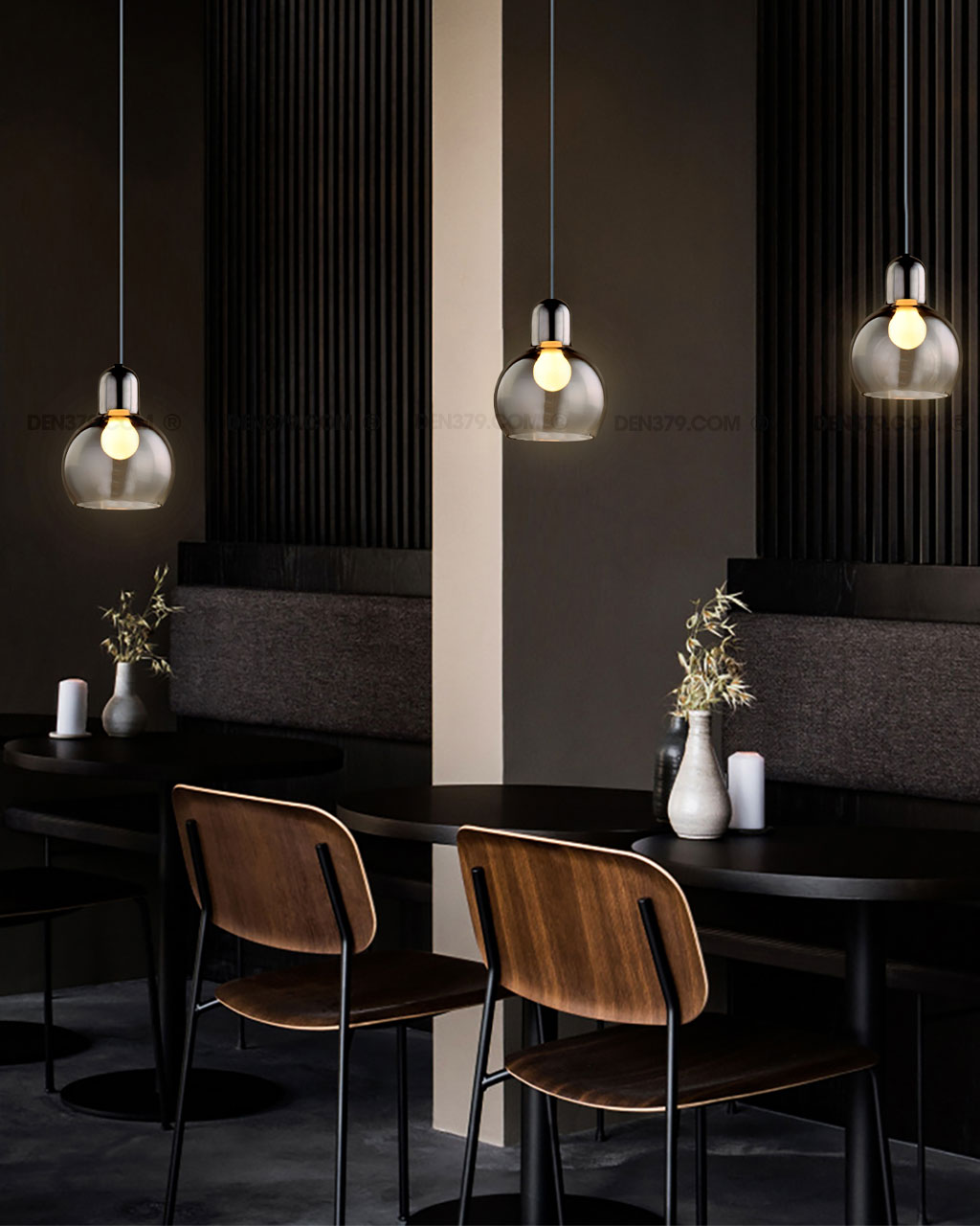 Thủy tinh là một trong những vật liệu hiện đại luôn được yêu thích. Mỗi màu sắc thủy tinh sẽ tương tác khác nhau với ánh sáng. Đèn thả thủy tinh D2079 có thiết kế độc đáo với 3 chụp thủy tinh là trong suốt, đen và màu trà. Chiếc đèn không chỉ giúp tạo nguồn sáng dễ chịu mà còn mang đến vẻ hiện đại và hiệu ứng chiếu sáng đẹp mắt. Đây là lựa chọn tuyệt vời cho bàn ăn, thả đầu giường phòng ngủ, góc đọc sách – làm việc…