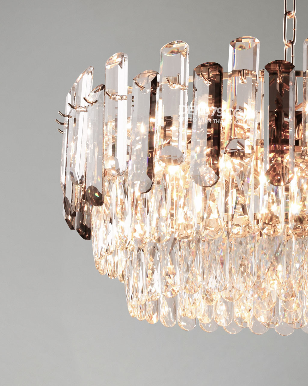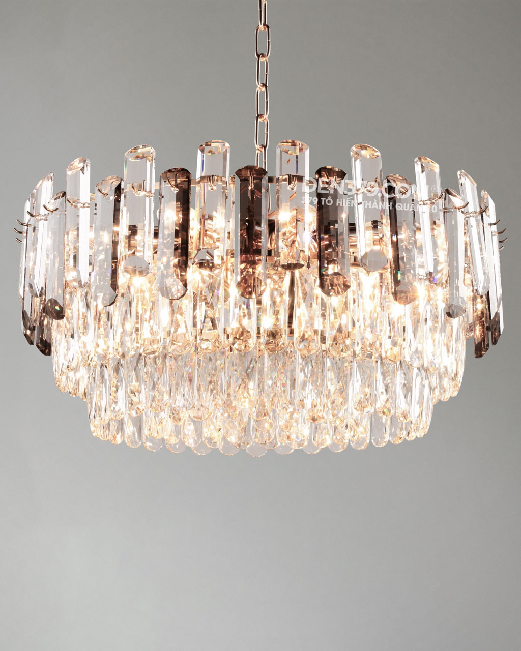 | Vật liệu | Inox xi mạ PVD, Pha lê |