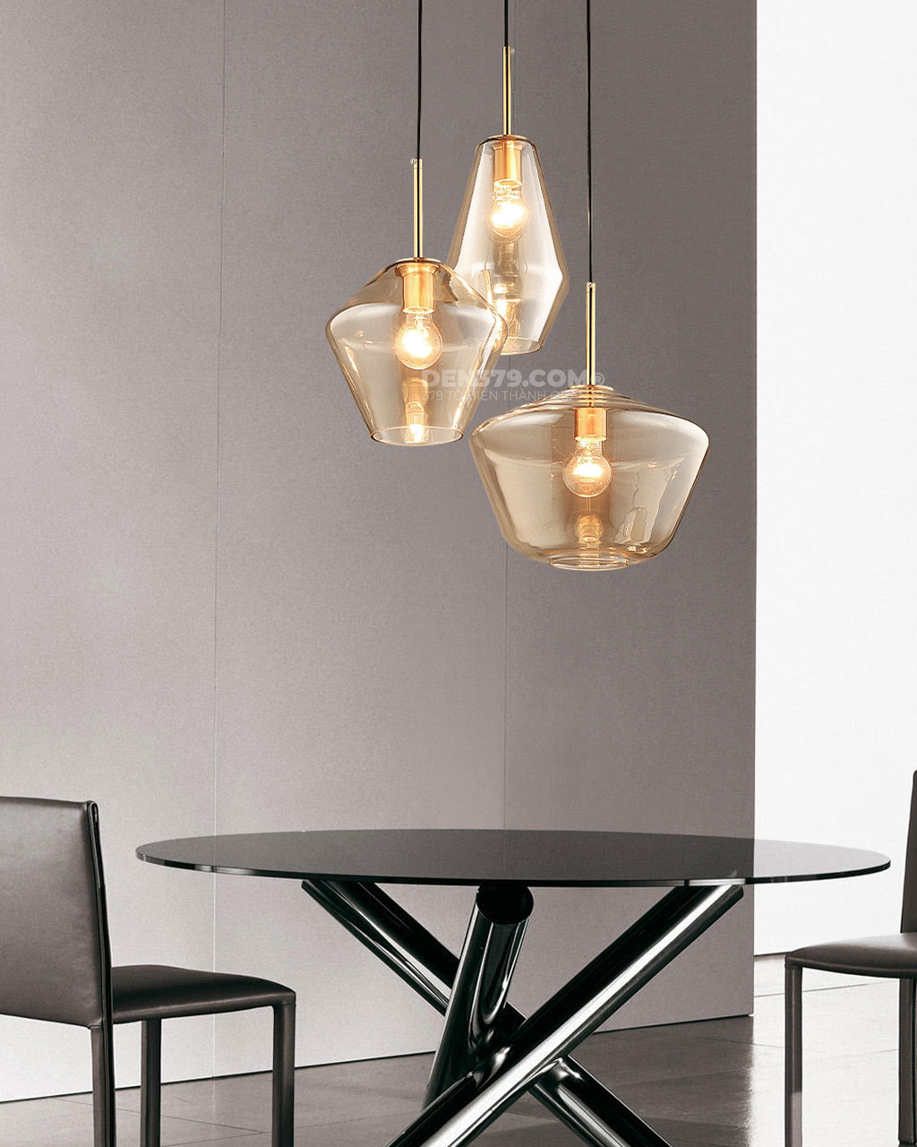 Đèn thả thủy tinh màu trà 3 bóng trang trí bàn ăn LVY860