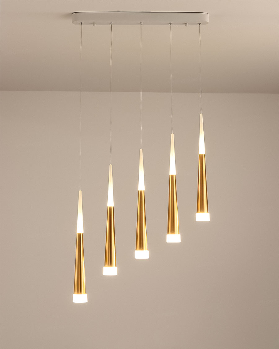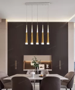 Đèn thả trang trí bàn ăn cao cấp 5 bóng TD01/5 là sự kết hợp tuyệt vời giữa thiết kế hiện đại và chất lượng ánh sáng tuyệt hảo. Được chế tác từ chất liệu hợp kim nhôm xi PVD, đèn thả này mang đến cho không gian bàn ăn của bạn một vẻ đẹp sang trọng, đẳng cấp.