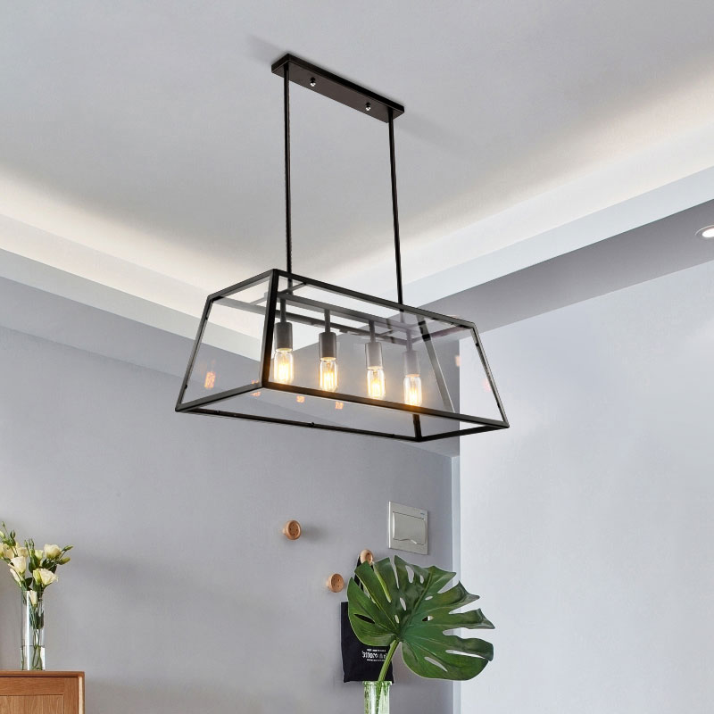 Đèn thả bàn ăn sử dụng đến 4 bóng LED, cung cấp ánh sáng ổn định cho các bàn ăn lớn. Kiểu dáng chiếc đèn có hình khối chữ nhật đơn giản, dễ dàng ứng dụng tại mọi không gian.