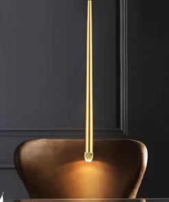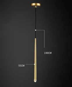Đèn thả LED ống rọi thân vàng cao cấp 42485 có độ dài dây treo tiêu chuẩn 1m. Den379.com hỗ trợ thay thế dây treo với độ dài linh hoạt theo yêu cầu của bạn ( xin liên hệ nhân viên tư vấn để được hỗ trợ).