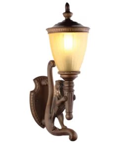 Mẫu đèn tường trang trí ngoài trời có khả năng chống nước cao và ánh sáng ấm cúng. Chiếc đèn mang đến vẻ sang trọng cho ngôi nhà với hình tượng Sư tử mang đèn. Màu sắc và kiểu dáng của đèn theo phong cách Tân cổ điển, hài hòa với mọi không gian.