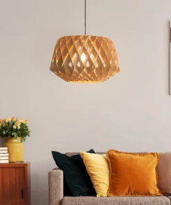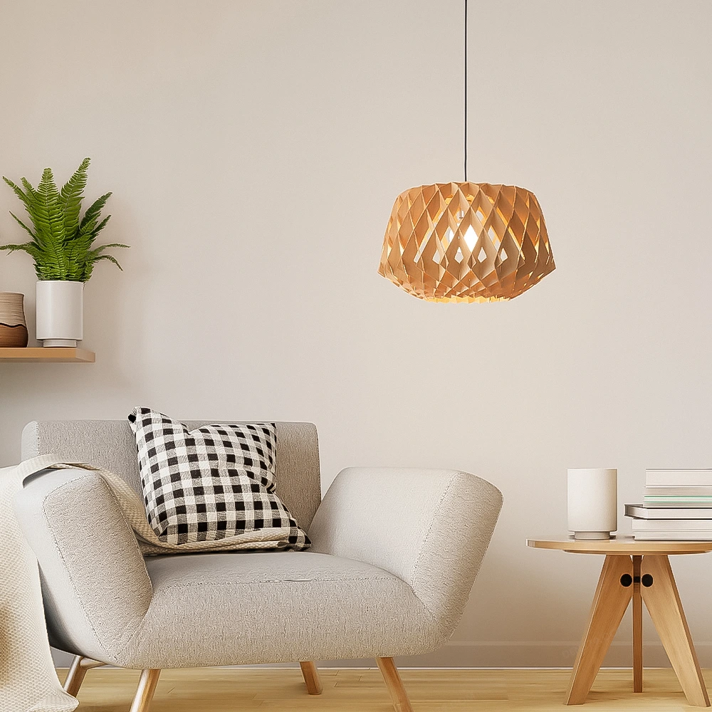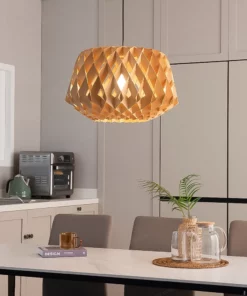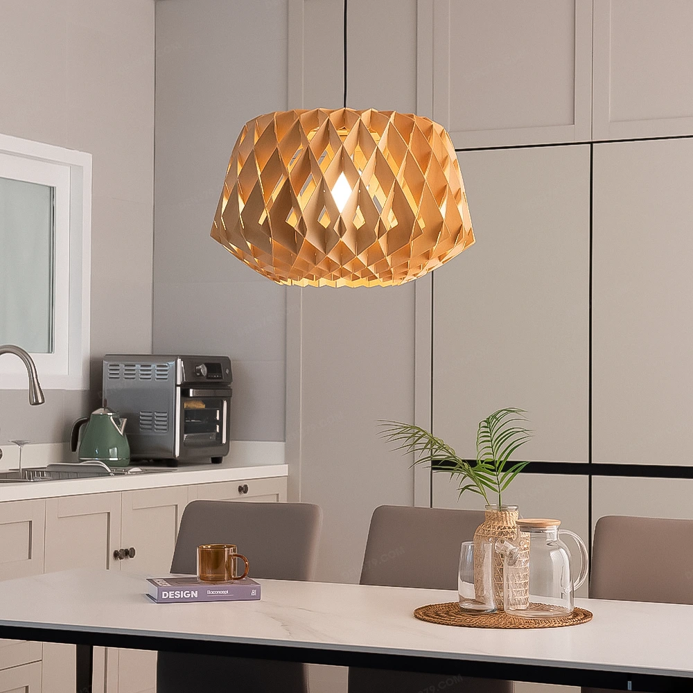 Xây dựng phong cách tinh tế và ấm cúng cho không gian của bạn với đèn thả P9155. Chiếc đèn sử dụng vật liệu gỗ tự nhiên cao cấp với công nghệ gia công lá gỗ cao cấp. Chiếc đèn vừa giữ được màu sắc và hoa văn gỗ tự nhiên, vừa đem đến vẻ nhẹ nhàng, tươi mới.