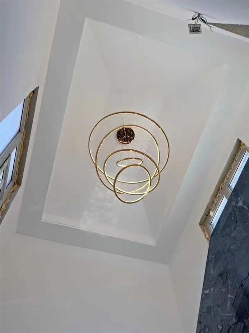 Đèn thả thông tầng 5 vòng tròn hợp kim vàng bóng cao cấp 72350