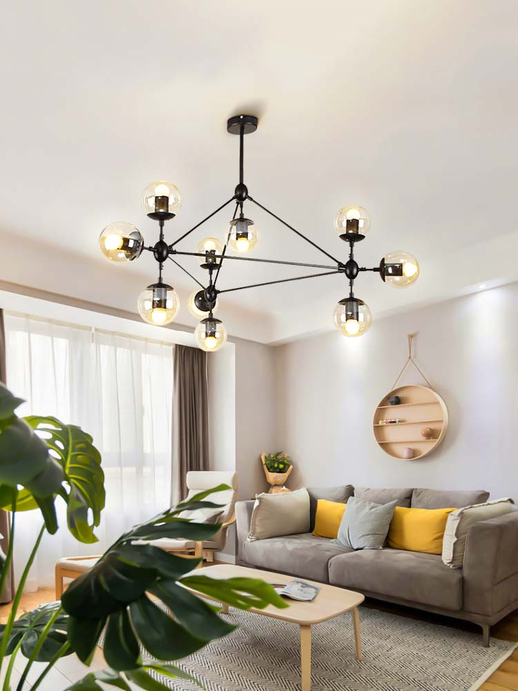 Chiếc đèn chùm phân tử 10 bóng rất phổ biến trên thị trường. Đây là chiếc đèn chùm có kiểu dáng hiện đại được yêu thích. Đây là lựa chọn rất tuyệt vời để trang trí cho phòng khách mọi gia đình.