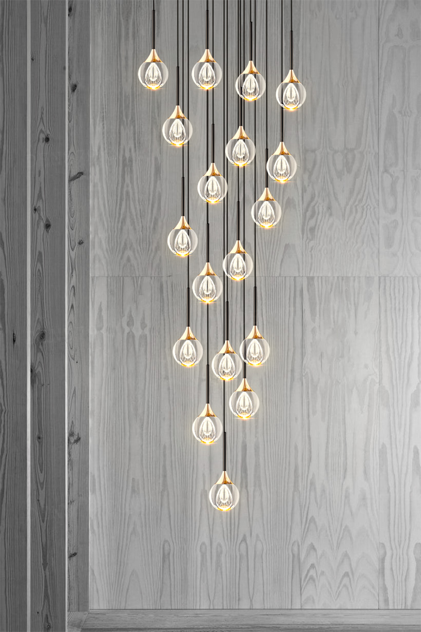 Đèn thả pha lê trang trí thông tầng 18 bóng 84138/18