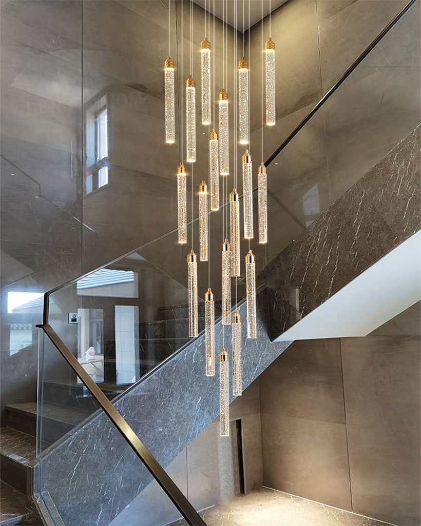 Đèn thả pha lê trang trí thông tầng 25 bóng 86565