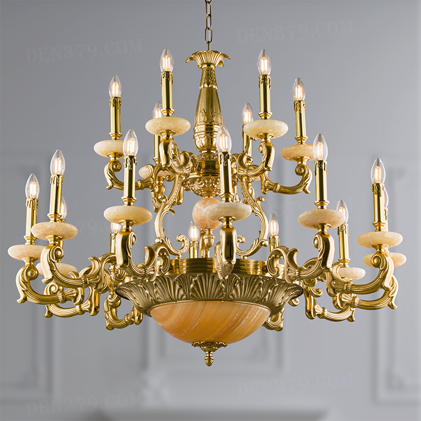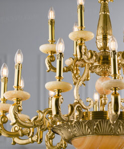 Đèn chùm đồng cổ điển chao đá cao cấp 86845