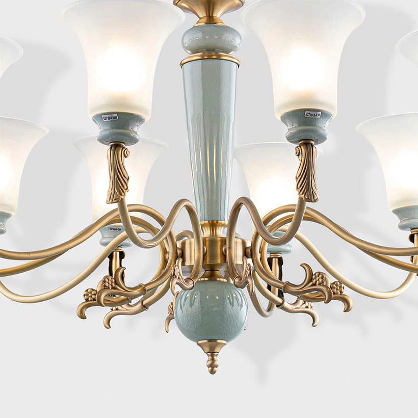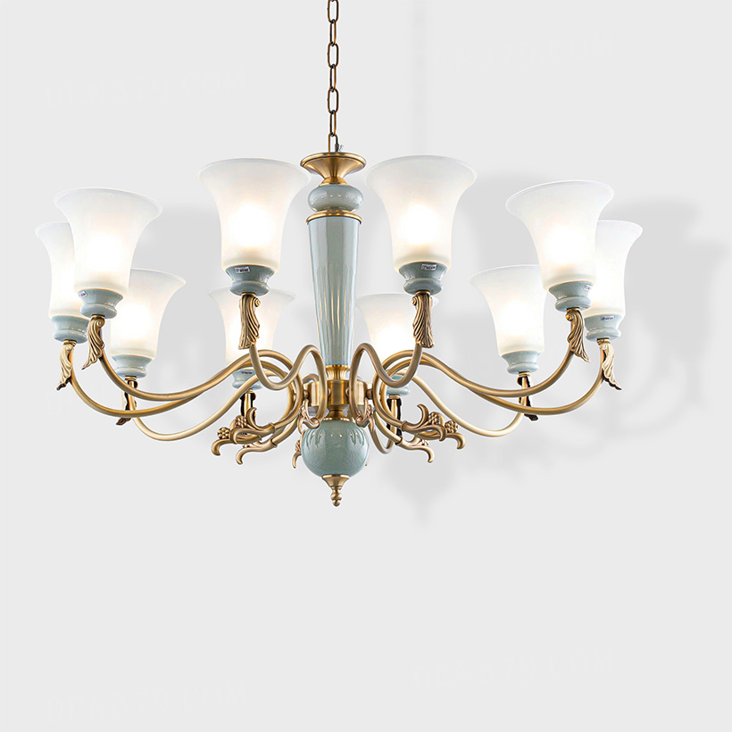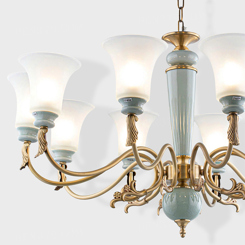 Đèn chùm trang trí thân đồng gốm sứ cao cấp 63795