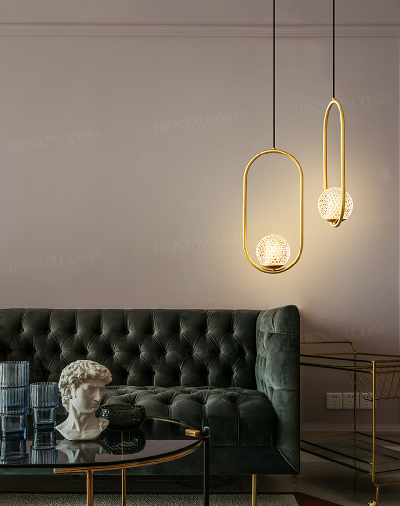 Đèn thả trang trí bàn ăn, phòng khách, phòng ngủ khung đồng chụp thủy tinh 66836