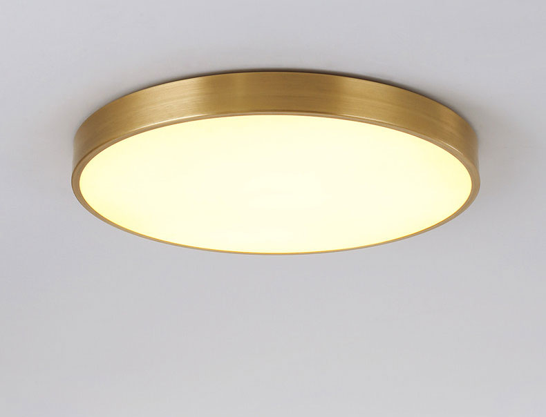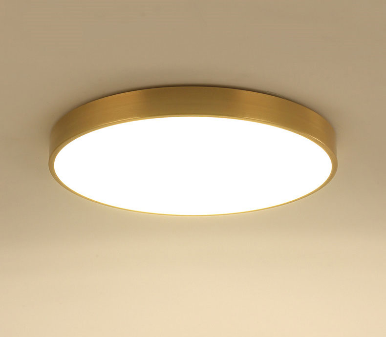 Đèn ốp trần L02087 có thiết kế hình tròn với màu vàng đồng sang trọng, cao cấp.