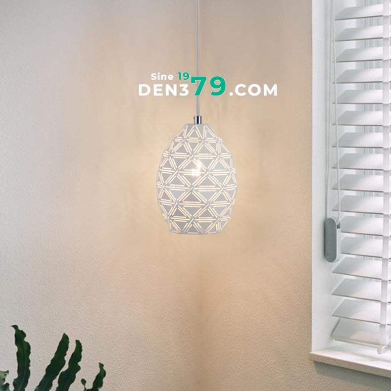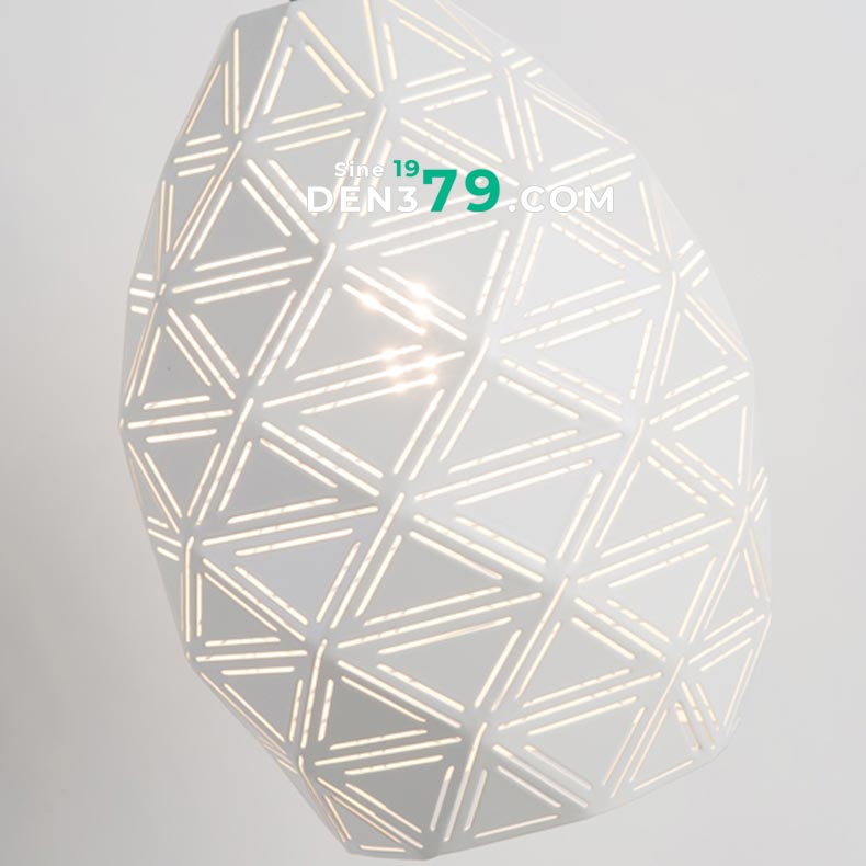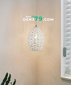Mẫu đèn thả có thiết kế đơn giản và nhỏ gọn, với chao đèn bằng hợp kim hoa văn độc đáo. Chiếc đèn mang ánh sáng dễ chịu, dùng để trang trí cho bàn ăn, đầu giường ngủ… và rất nhiều vị trí khác.